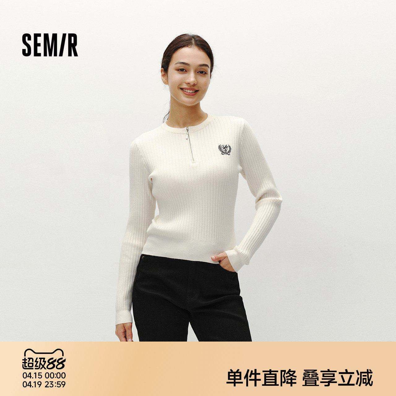 森马毛衣女冬季短款半开襟刺绣修身套头衫女生休闲简约风显瘦上衣