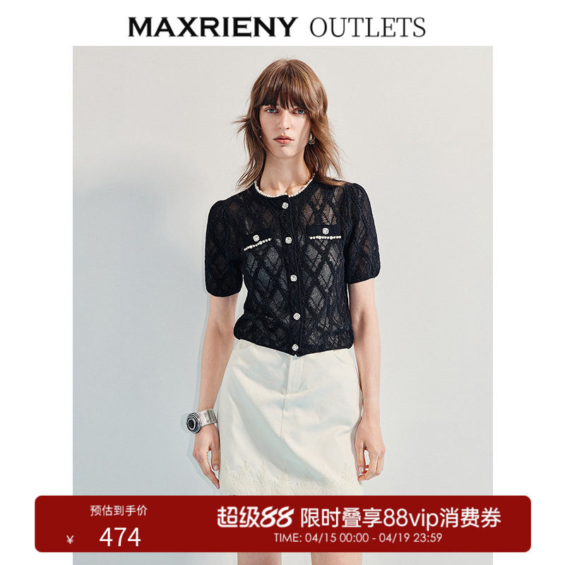 【奥莱】MAXRIENY法式摩登感钉珠套头毛衫短款复古修身上衣女