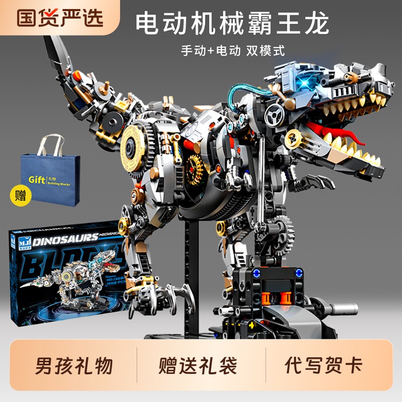 恐龙积木男孩拼装玩具霸王龙6岁以上8机甲12拼图机械新年益智礼物