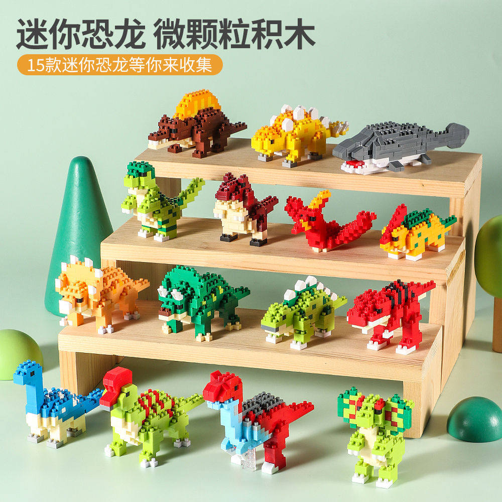 微颗粒恐龙世界拼装迷你拼装中国积木模型玩具摆件儿童男女孩礼物