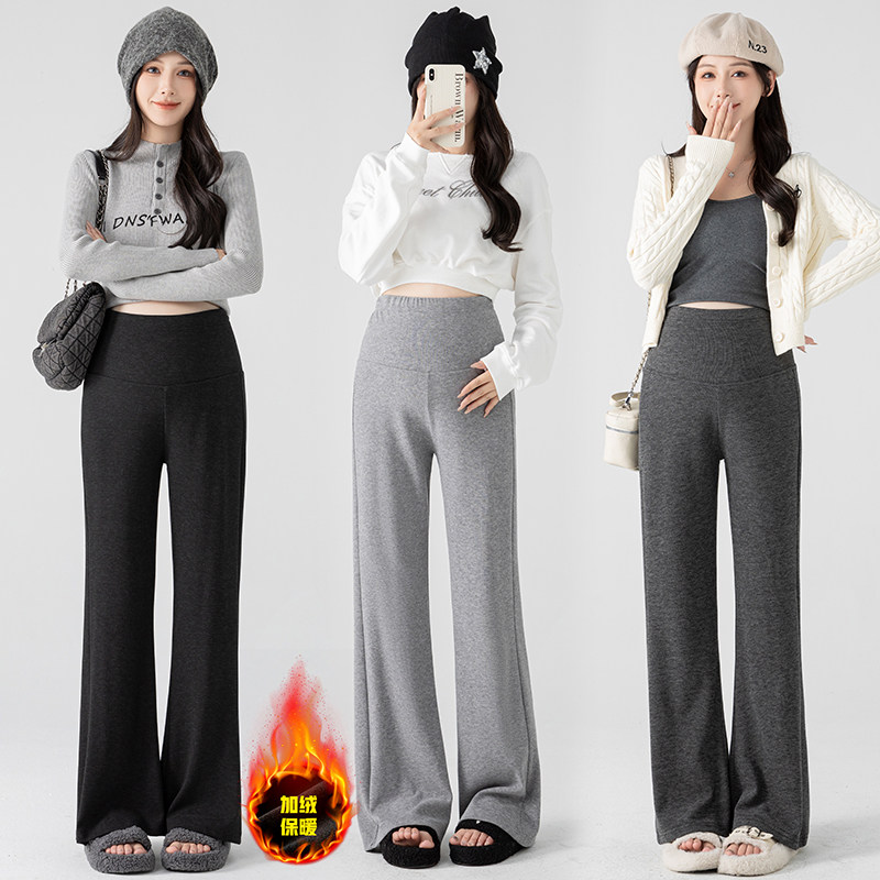 孕妇阔腿裤秋冬装休闲直筒糯米裤无托腹加绒加厚保暖裤子冬季外穿