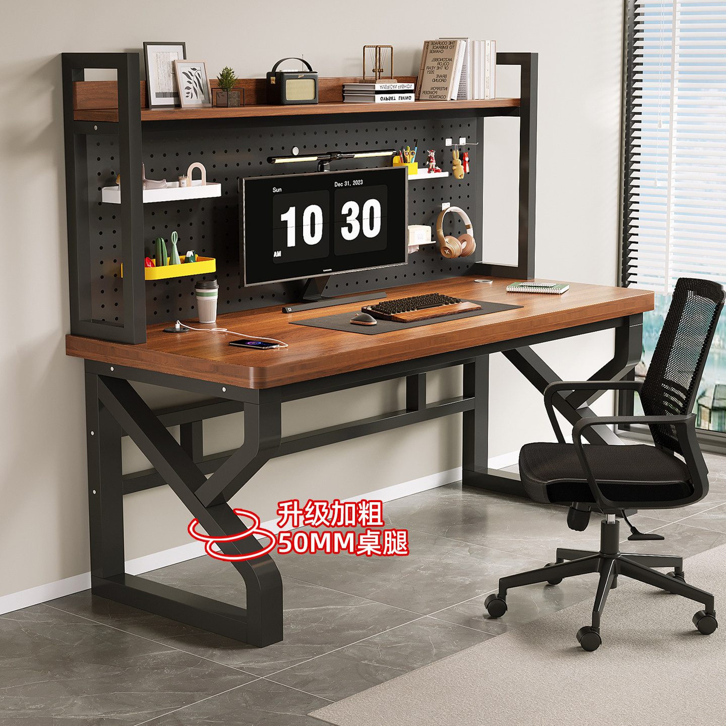 实木书桌书架组合一体桌家用带洞洞板电脑桌多功能学习桌办公桌子