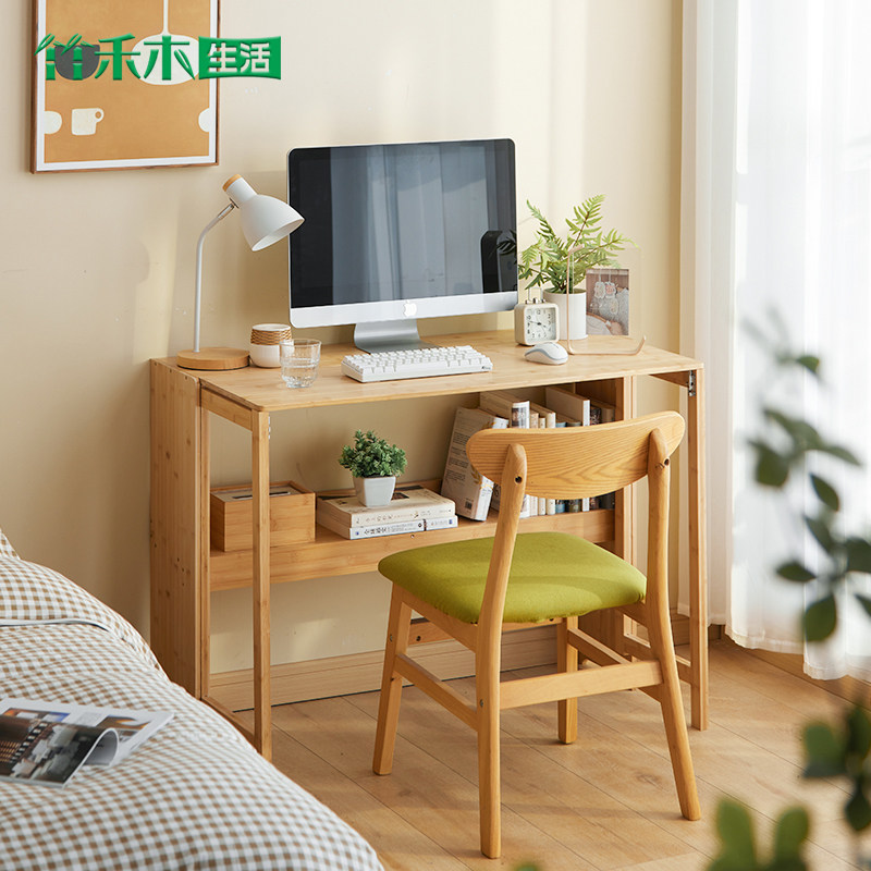 实木折叠书桌家用卧室床边桌电脑桌办公桌小户型靠墙学习写字桌子