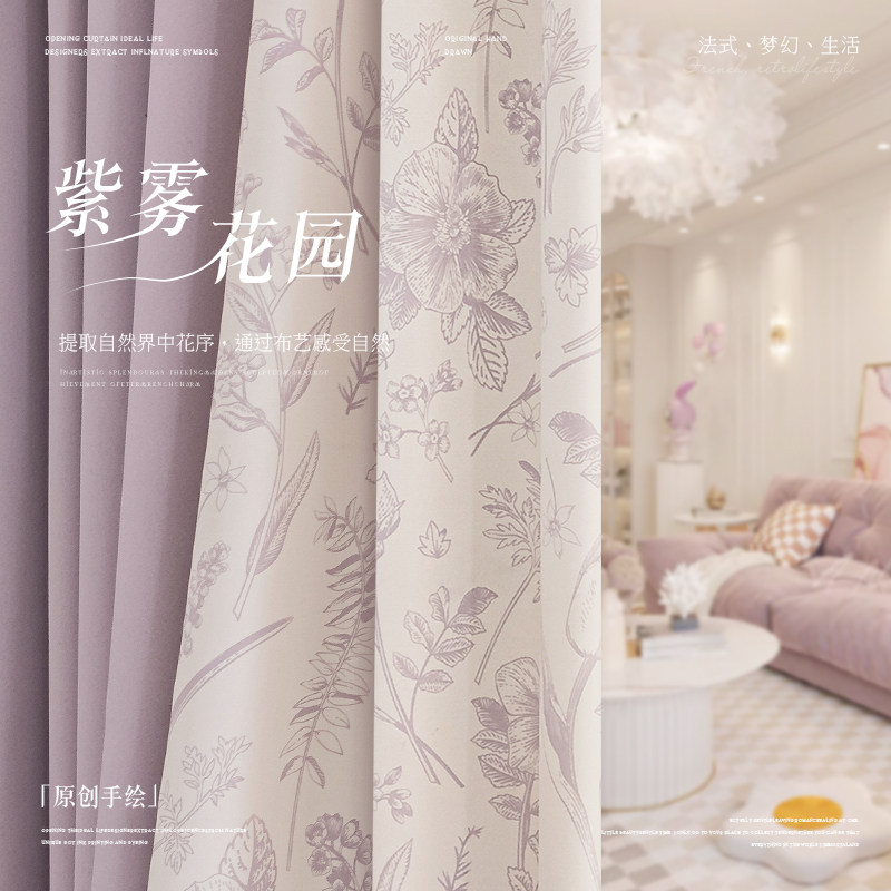全遮光双面棉麻紫色浪漫卧室窗帘高级感法式客厅绍兴柯桥女孩遮阳