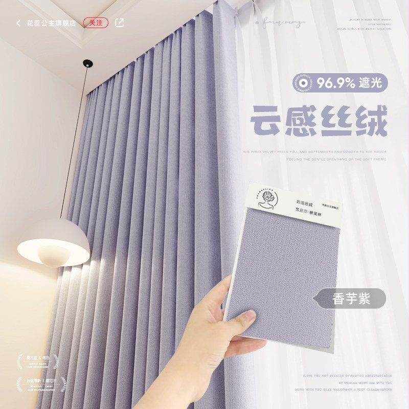 紫色清新遮光窗帘双面雪尼尔香芋紫卧室高级感2025新款隔热遮阳布