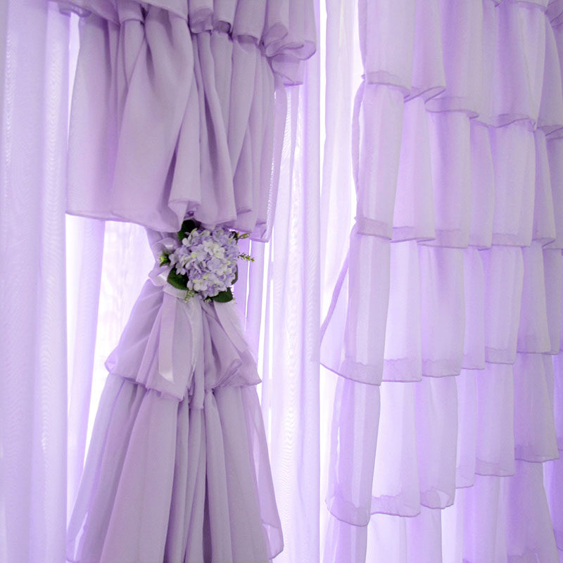窗帘紫色浪漫紫布置梦幻客厅卧室公主风欧式纱帘小短半网帘门沙帘