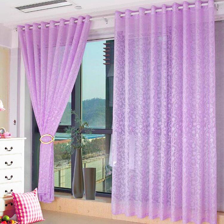 紫色窗帘浪漫紫白纱帘隔断客厅简约欧式提花卧室阳台飘窗薄纱遮光