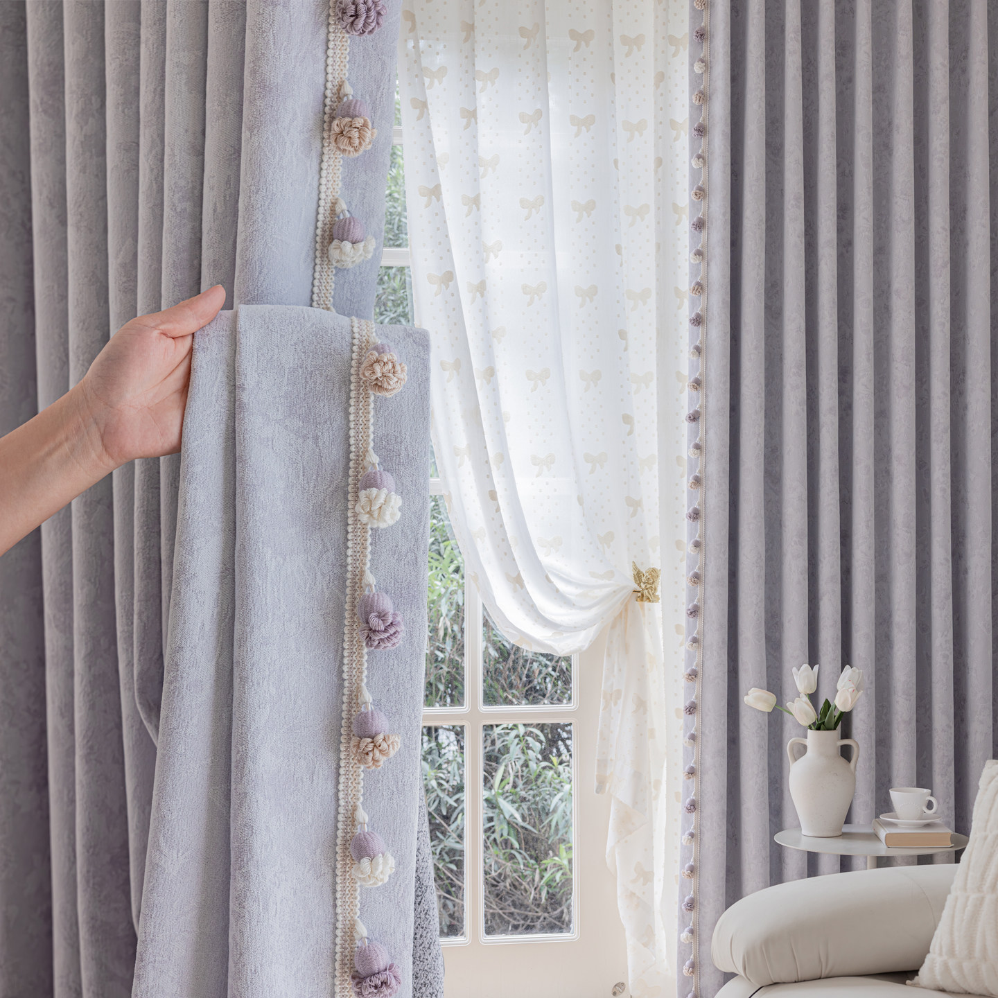 - 定制绣花窗帘