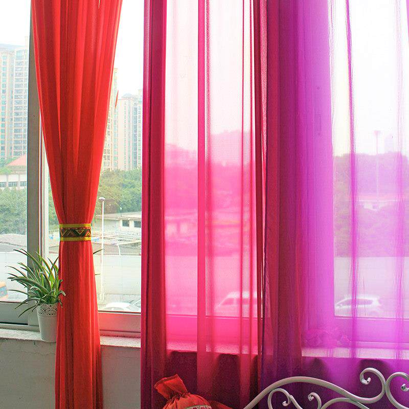 纯色现代飘窗田园雪纺红色白色黄色紫色纱帘帘成品客厅卧室窗帘纱