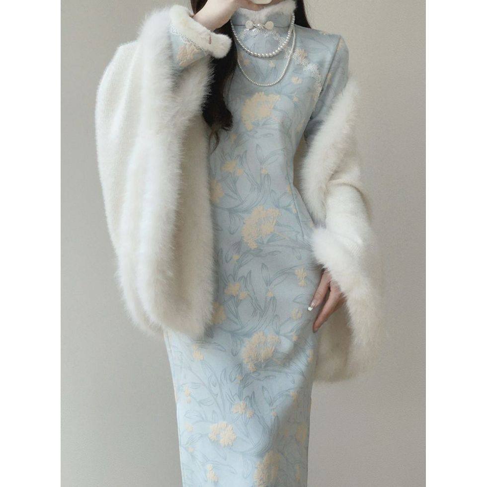 新中式奥黛旗袍冬季加绒加厚年轻款少女长款连衣裙收腰显瘦11/19