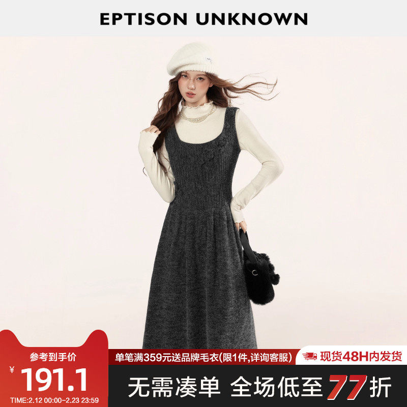EPTISON针织连衣裙女2025冬季新款复古少女风长款梨形伯克利裙子