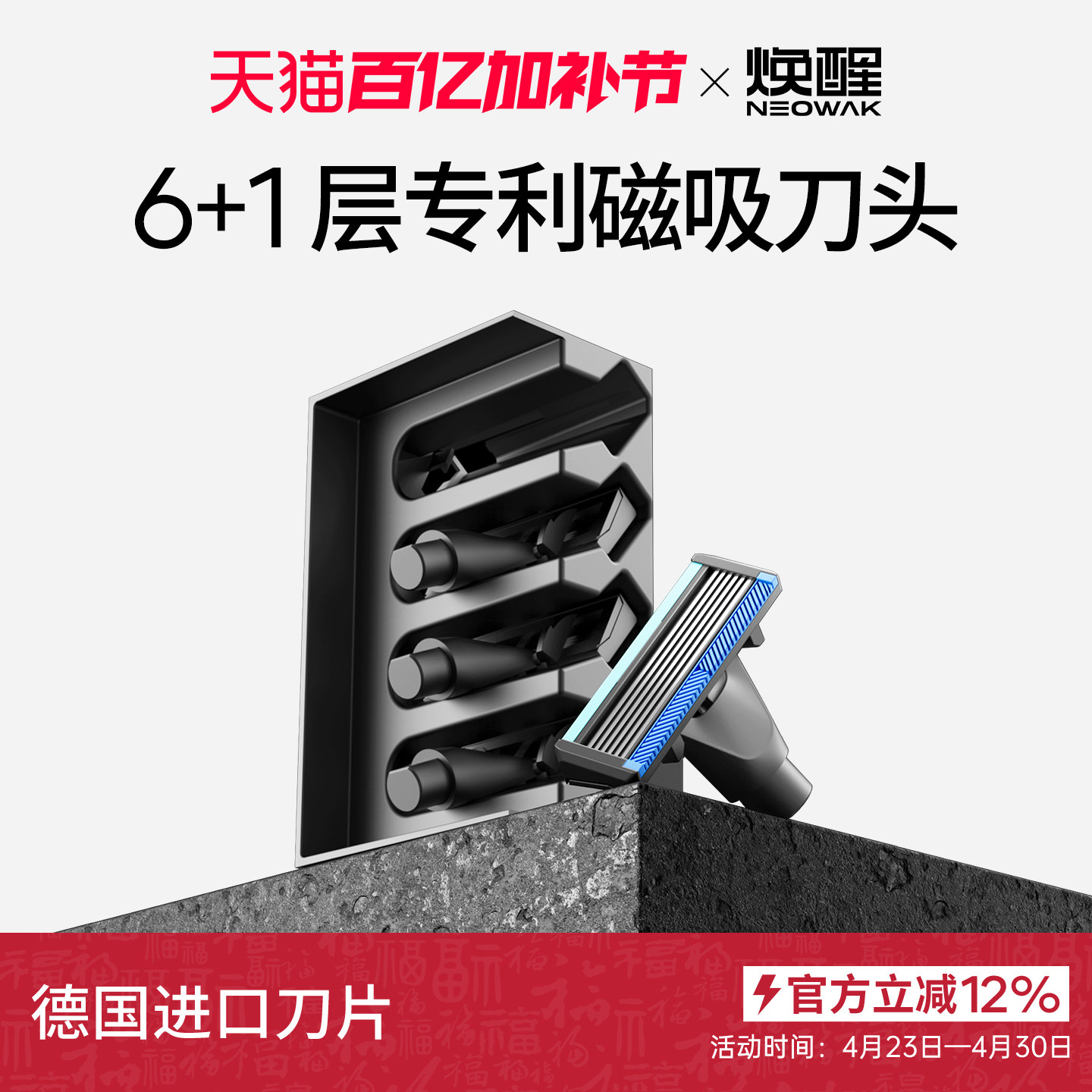 焕醒剃须刀原装手动替换刀片6+1层4只装德国老式刮胡刀头剃须泡沫