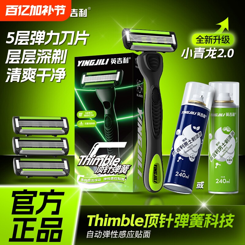 英吉利小青龙剃须刀手动刮胡刀男士非电动五层刀头泡沫胡须膏套装