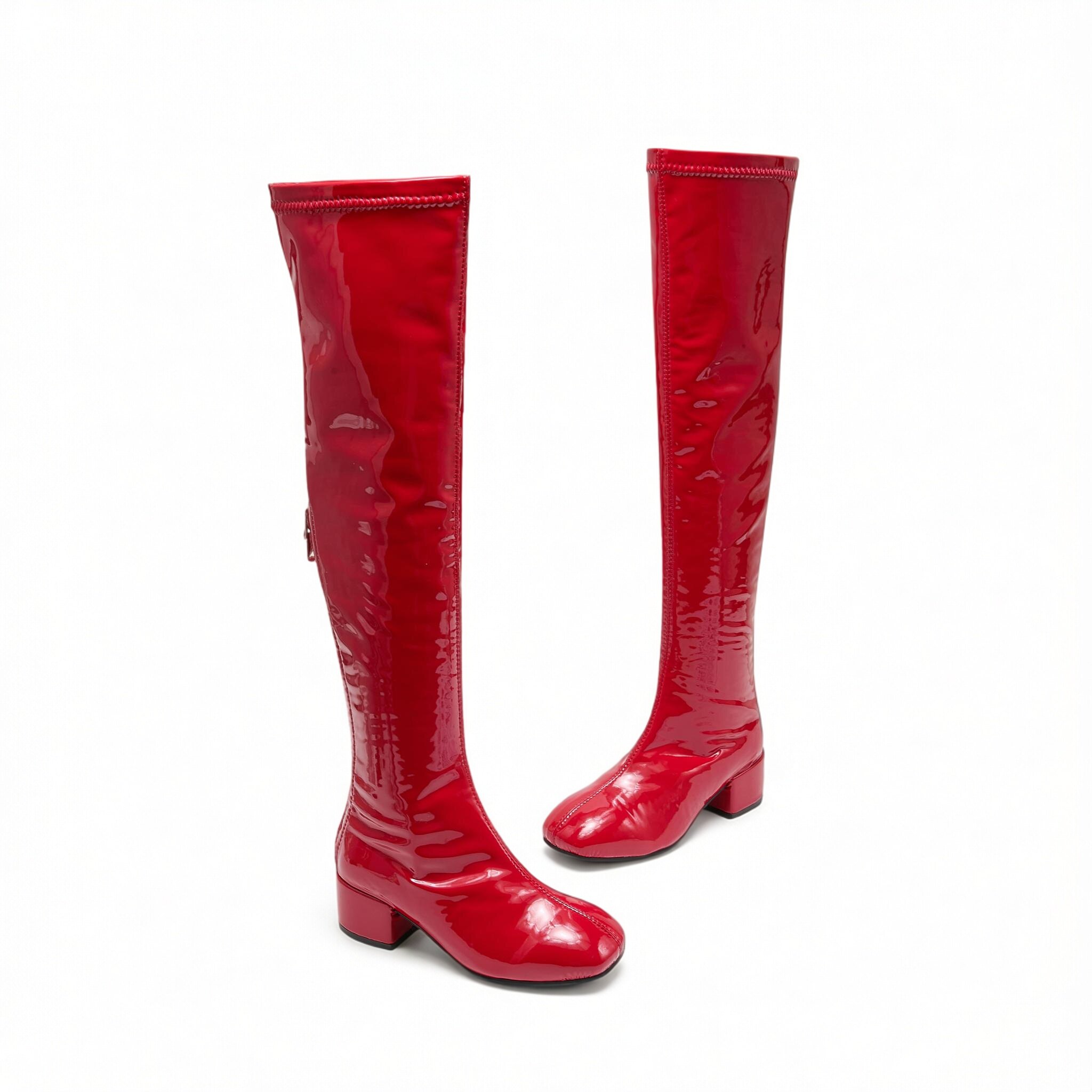 定制款女童走秀过膝弹力靴舞台表演专用高跟鞋粗跟漆皮气质舞台鞋