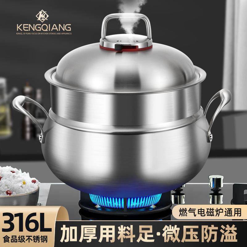 2024新款汤锅加深家用苹果汤锅涂层煲汤压锅无微火锅煮粥两用蒸煮