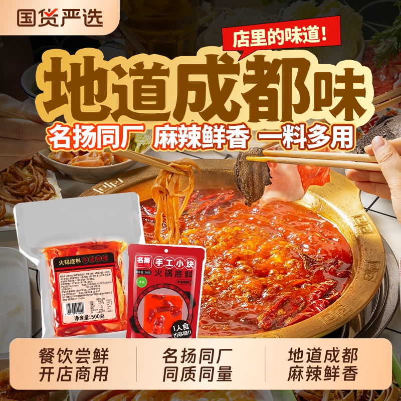 名扬火锅底料500g正宗四川特产手工牛油火锅料特辣微辣麻辣藤椒味