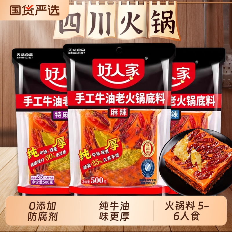 好人家火锅底料特麻辣500g牛油火锅料四川重庆麻辣烫调料酸菜微辣