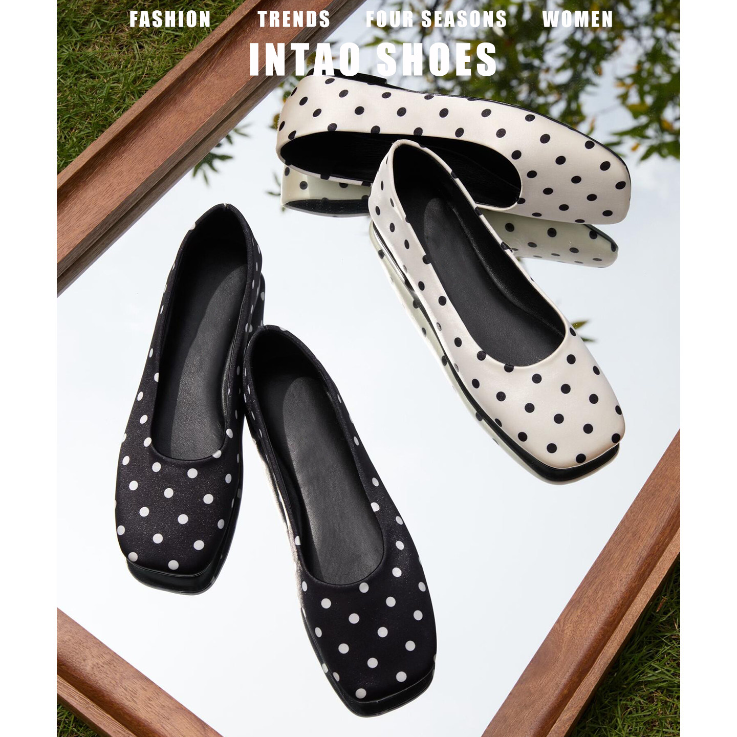 法式白色波点绸缎方头单鞋女平底2026新款设计感小众晚晚风温柔鞋