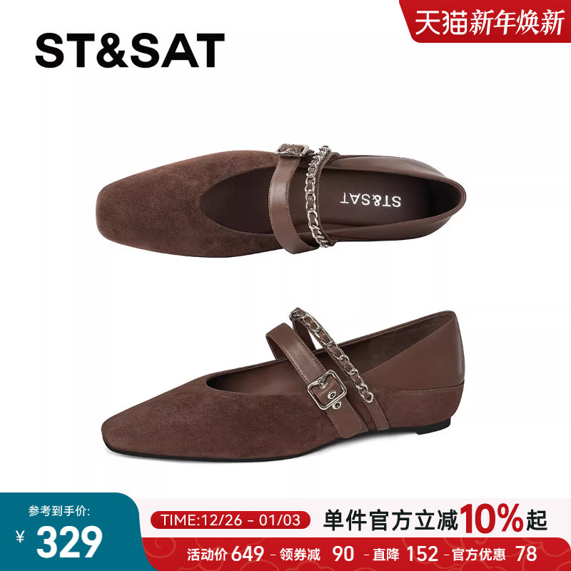 法式双拼扣带平底芭蕾舞玛丽珍鞋女2025新款棕色复古方头浅口单鞋