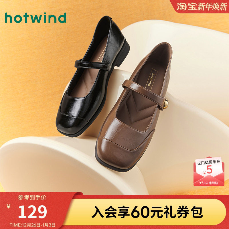 热风浅口单鞋女2025年秋季新款法式方头平底单鞋百搭玛丽珍鞋女鞋