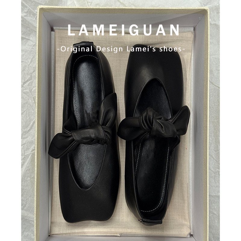 复古方头蝴蝶结玛丽珍鞋女2026春季新款黑色气质绝美浅口平底单鞋