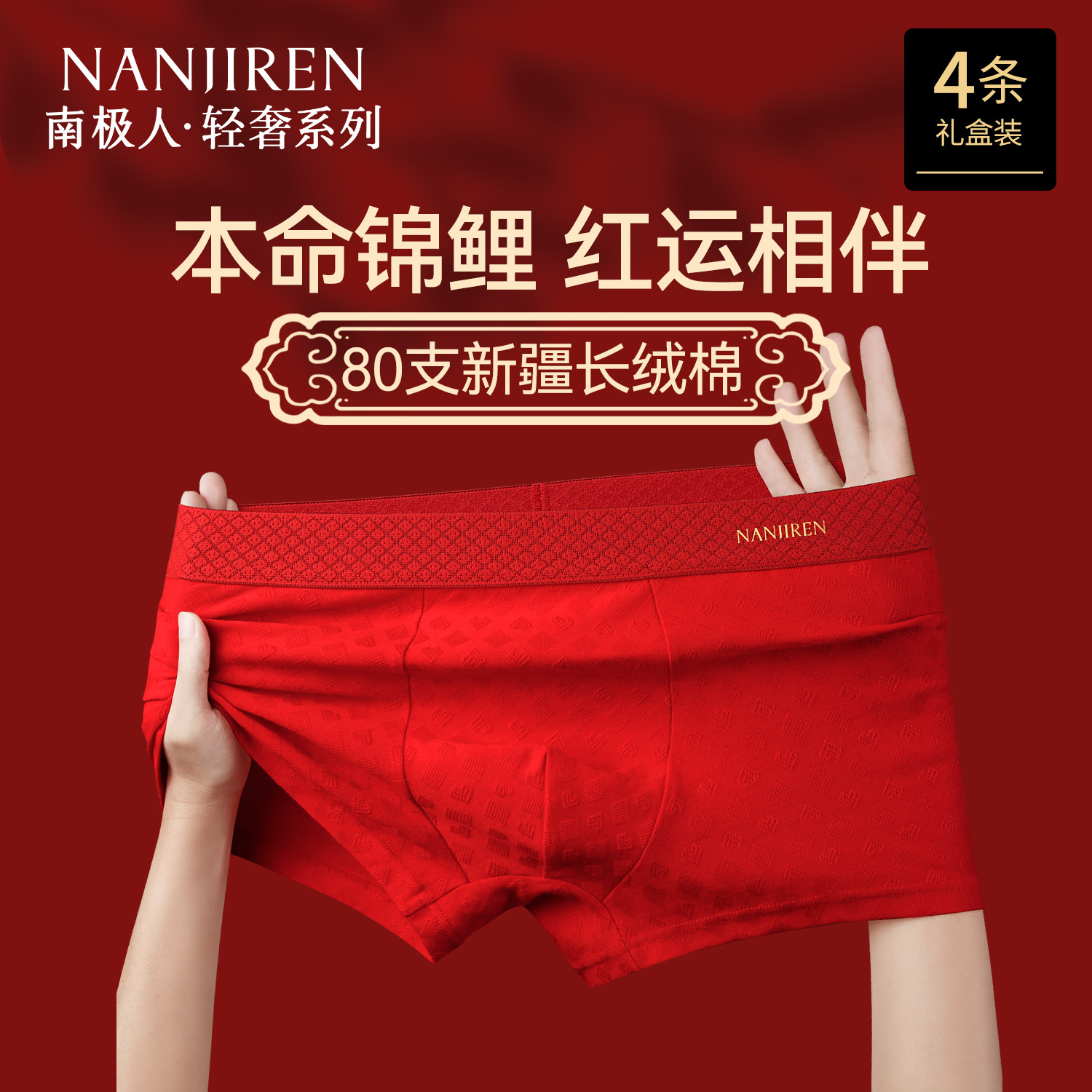 南极人男士内裤本命年红色男生款纯棉透气四角平角短裤头结婚礼物