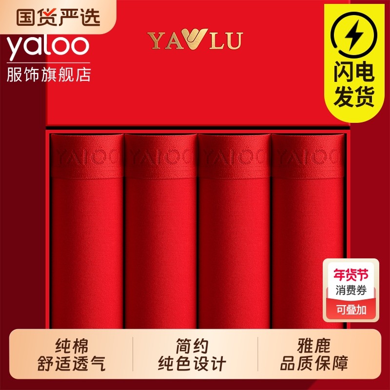 雅鹿男士内裤本命年红色纯棉平角裤头男款四角短裤衩男生新婚礼物