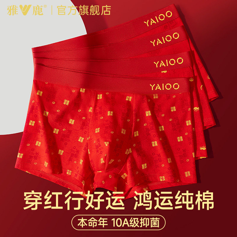 雅鹿男士内裤本命年红色纯棉抗菌平角裤男生2025新款马年结婚礼物