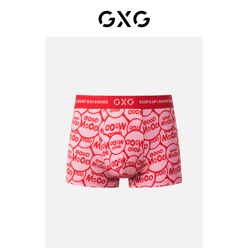 GXG男士内裤本命年红色内裤男棉莫代尔结婚印花平角裤短裤内裤男
