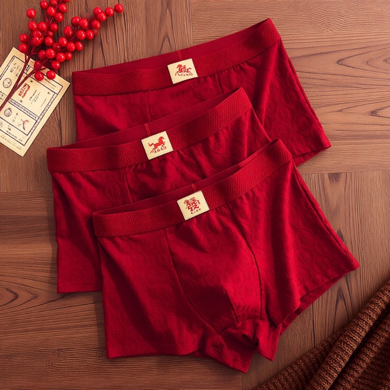 马年男士内裤本命年红色平角短裤生肖马大红男四角裤男生新年礼物