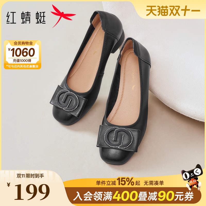 【直播特惠清仓】红蜻蜓女鞋乐福鞋通勤单鞋小皮鞋浅口单鞋高跟鞋