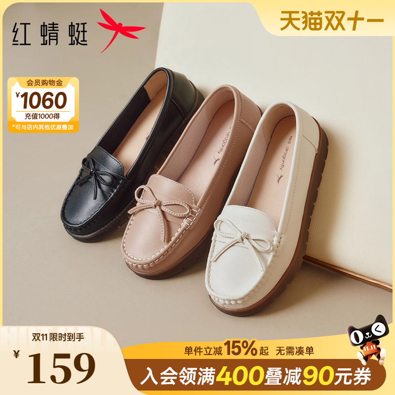 红蜻蜓单鞋女真皮超软小羊皮女鞋皮鞋蛋卷鞋软底妈妈鞋平底鞋船鞋