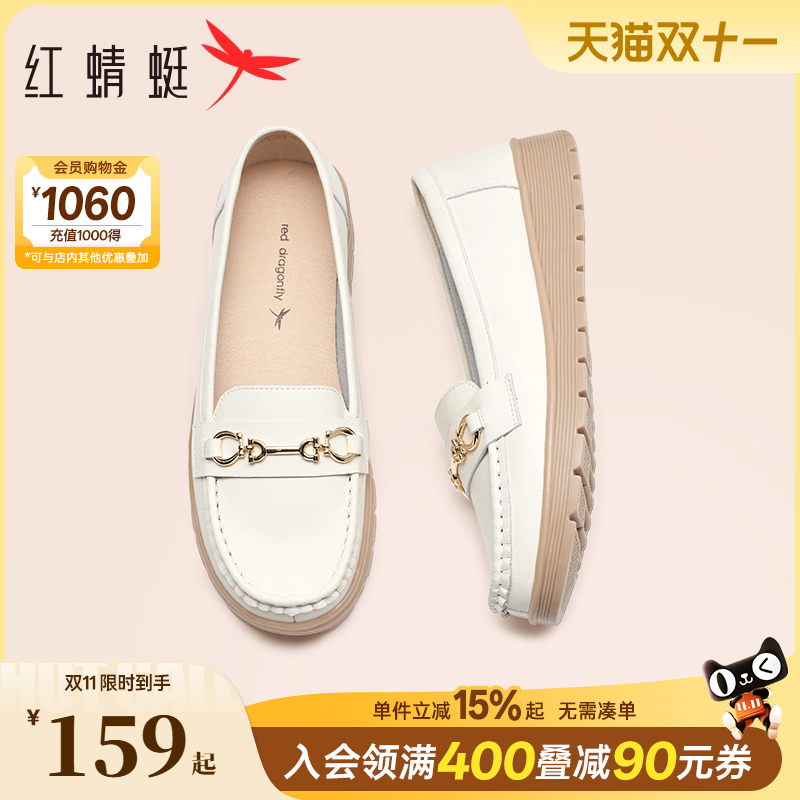 红蜻蜓乐福鞋女2025秋季新款女鞋一脚蹬黑色皮鞋真皮厚底妈妈单鞋