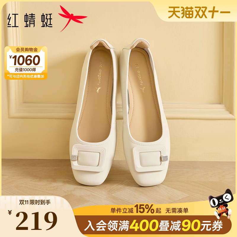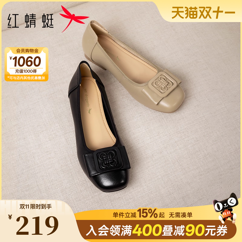 红蜻蜓单鞋女2025秋季新款女鞋平底舒适皮鞋超软羊皮软底妈妈鞋子