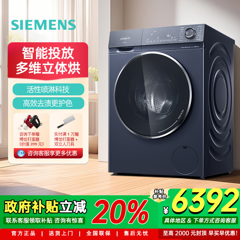 【政府补贴20%】西门子10公斤滚筒洗衣机家用全自动1U101U801U00