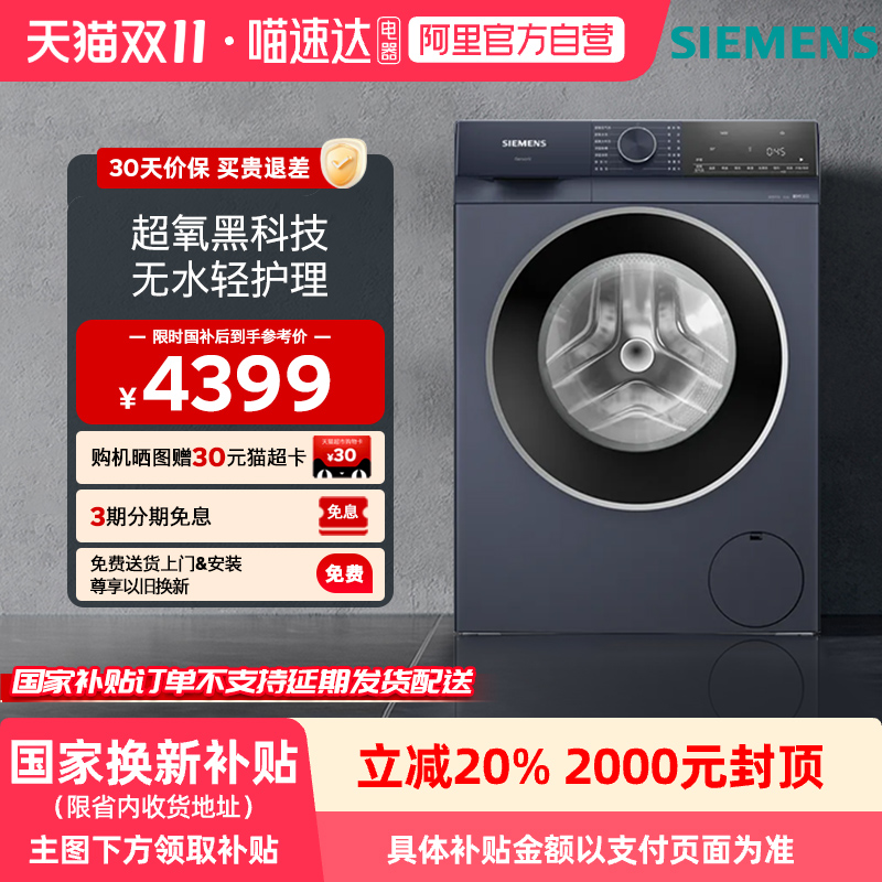 【蓝宝石超氧】西门子10公斤滚筒家用全自动洗衣机官方变频1E10