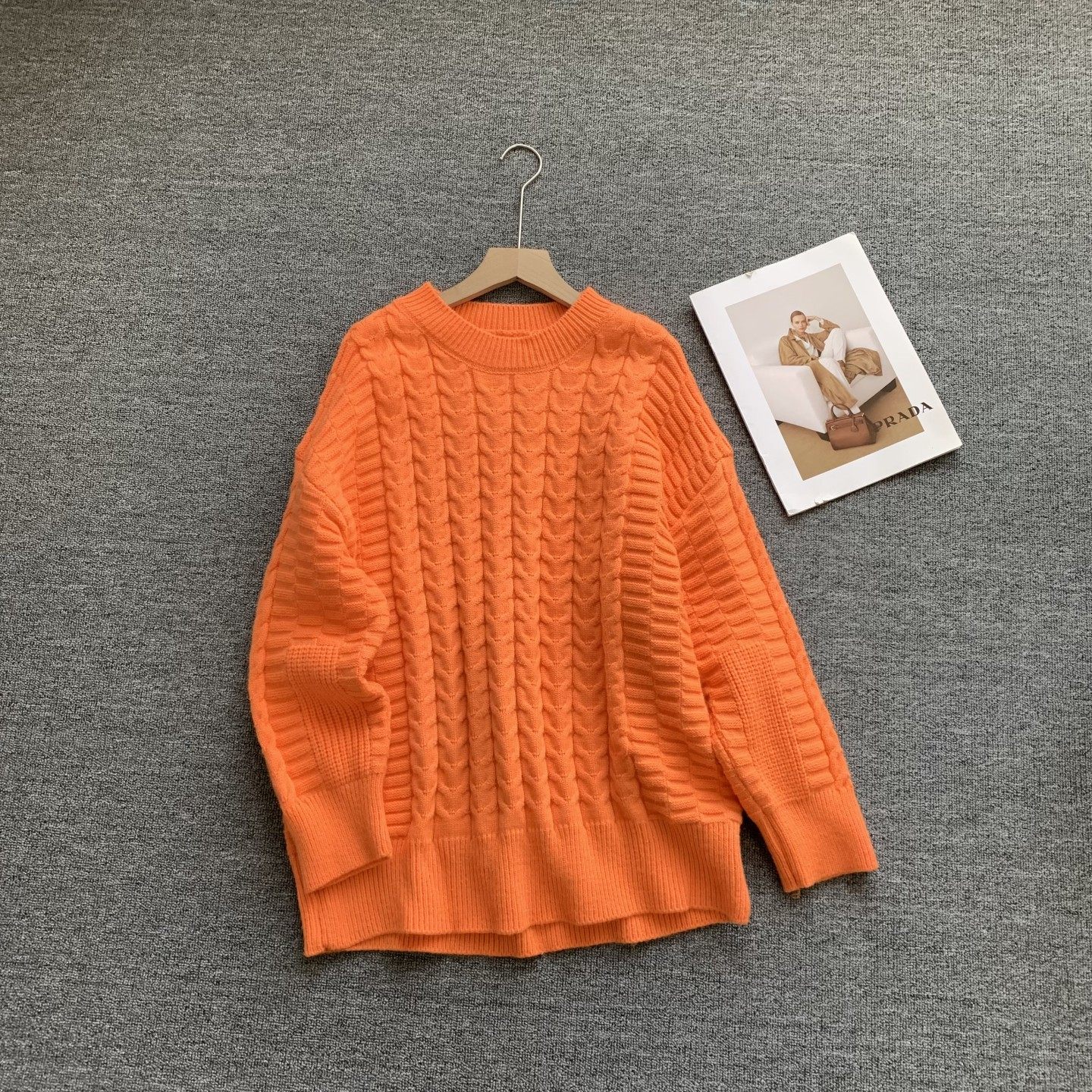 加厚版!慵懒风咖色麻花纹毛衣女冬季新款韩版宽松套头针织衫上衣