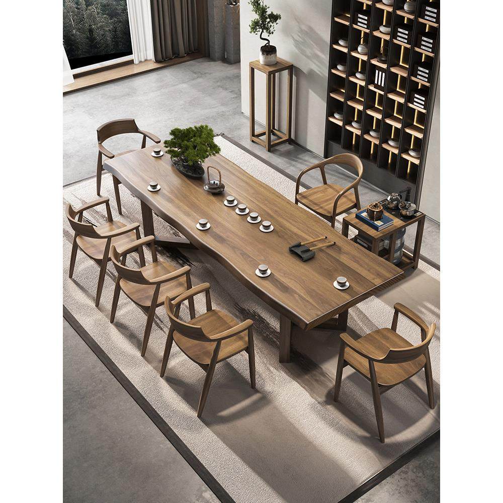 南美胡桃木全实木茶桌椅组合现代简约客厅家用高级感原木大板茶台