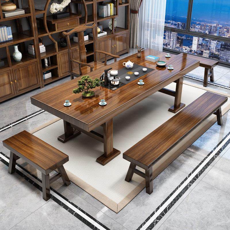 新中式实木茶桌轻奢简约阳台家用原木大板茶台办公室会客泡茶桌椅