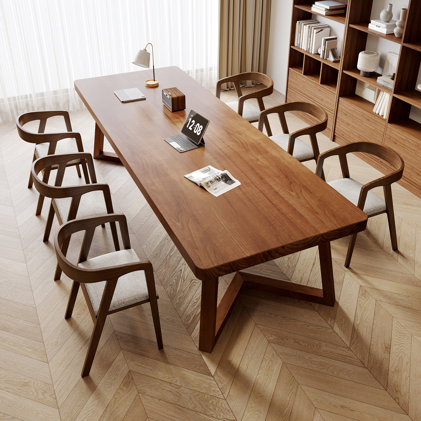 原木大板会议桌长桌大型办公桌子实木长条洽谈桌椅组合培训工作台