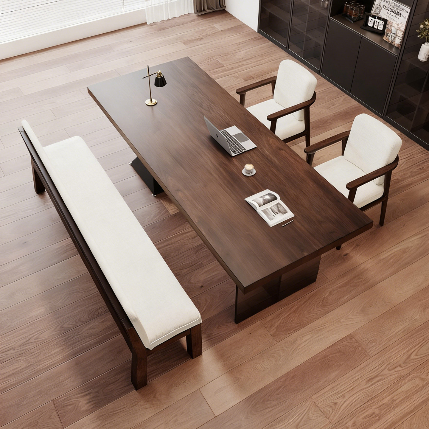 中古风北美黑胡桃木实木餐桌长方形原木大板桌客厅大长书桌工作台