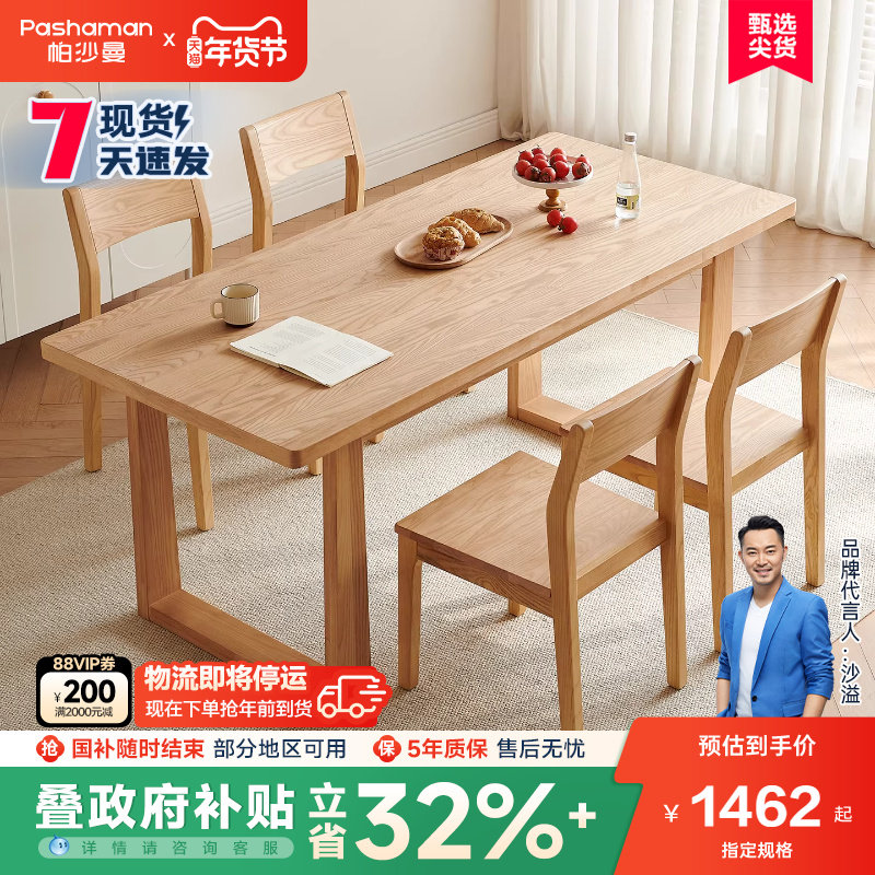 帕沙曼实木餐桌椅组合家用餐厅小户型简约吃饭桌子原木大板桌书桌