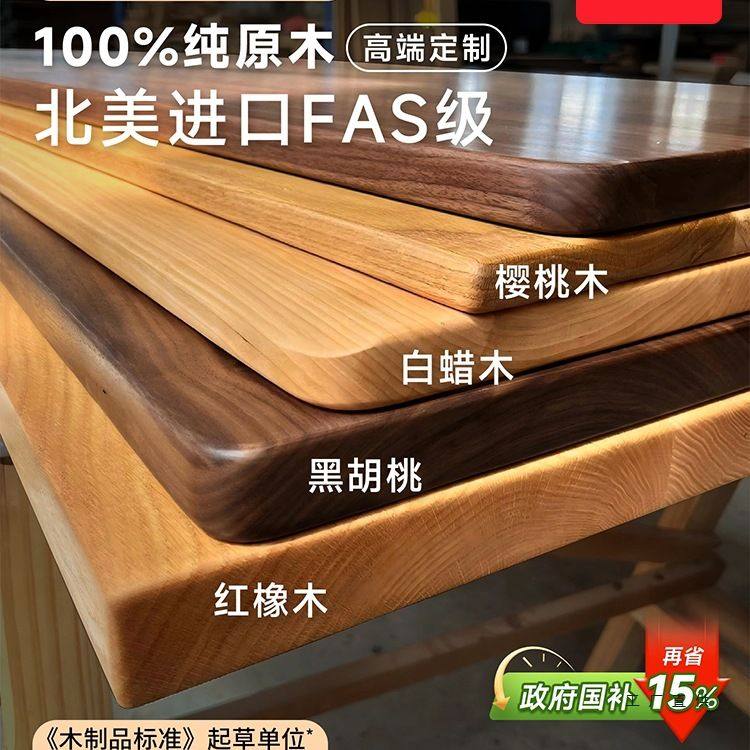实木桌板定 制原木大板白蜡木胡桃木樱桃木板电脑桌橡木板吧台面