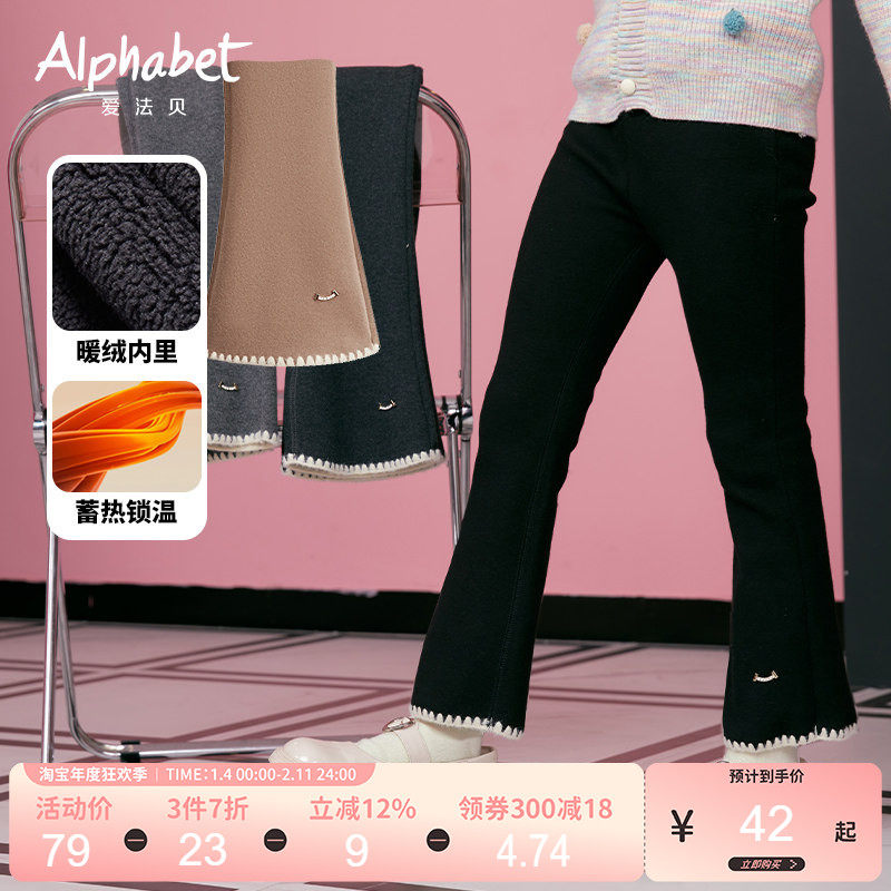 2025爱法贝春秋新款女童打底裤黑色显瘦喇叭裤裤脚流苏边长裤