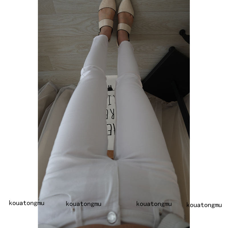 - 破洞紧身裤女 小脚裤