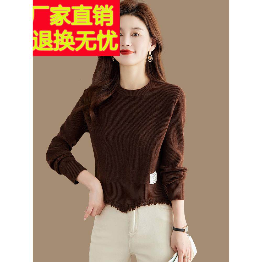 毛衣女短款秋冬加厚配高腰裤2024新款流苏羊毛衫小个子针织打底衫