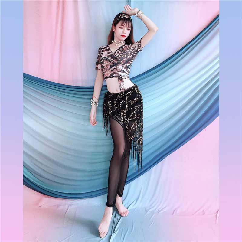 新款百雅千慧肚皮舞套装初学亮片流苏三角巾腰巾形体打底裤表演服
