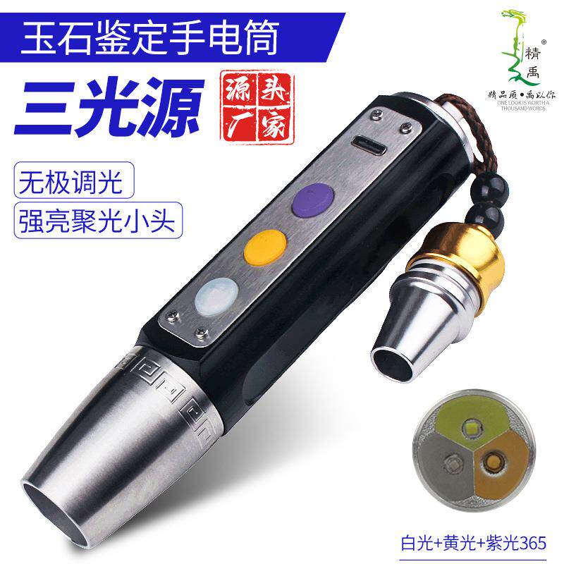 专业鉴定照玉石手电筒强光充电超亮三色翡翠珠宝石文玩专用紫光灯