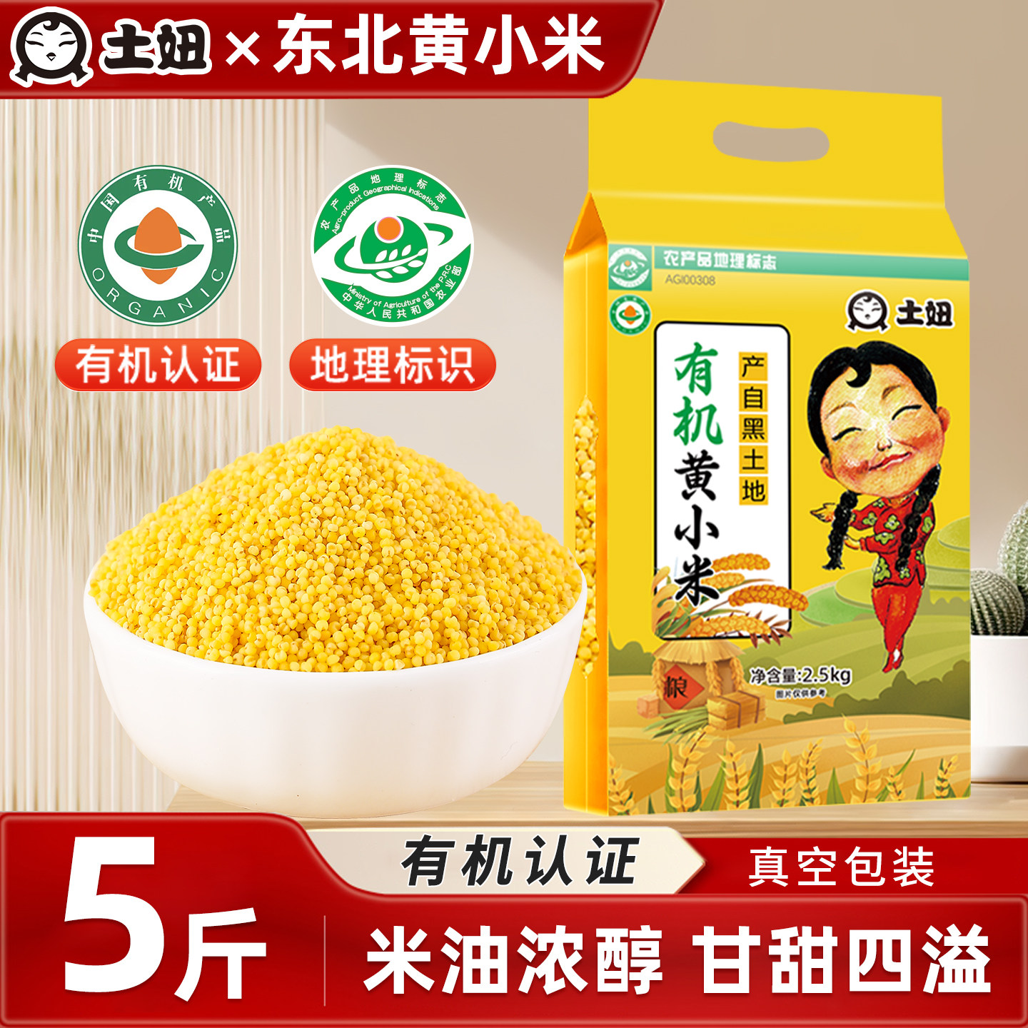 邹有才东北黄小米5斤五谷杂粮小米粥小黄米粮食香糯粘稠袋装真空