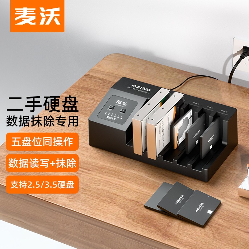 麦沃2.5/3.5寸硬盘盒五盘位硬盘座二手盘数据删除抹除外置读取器